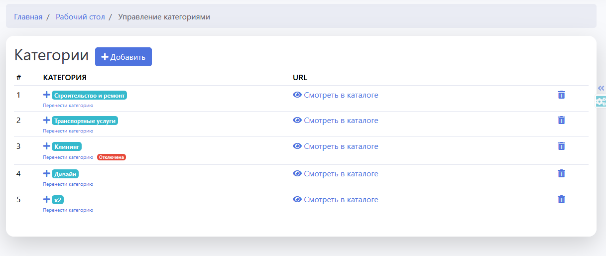 Редактирование категорий находится на /aucategories. Здесь вы можете добавить категории, редактировать их, а также переходить на каталог.