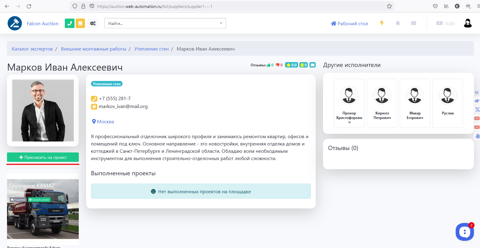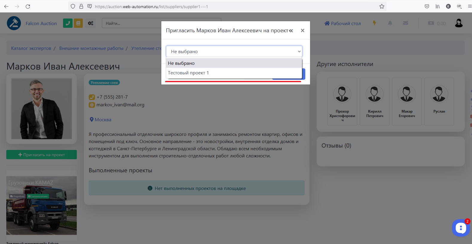 После того как Заказчик создаст проект, он может пригласить понравившегося исполнителя к себе на проект (не ждать пока исполнители начнут делать ставки).