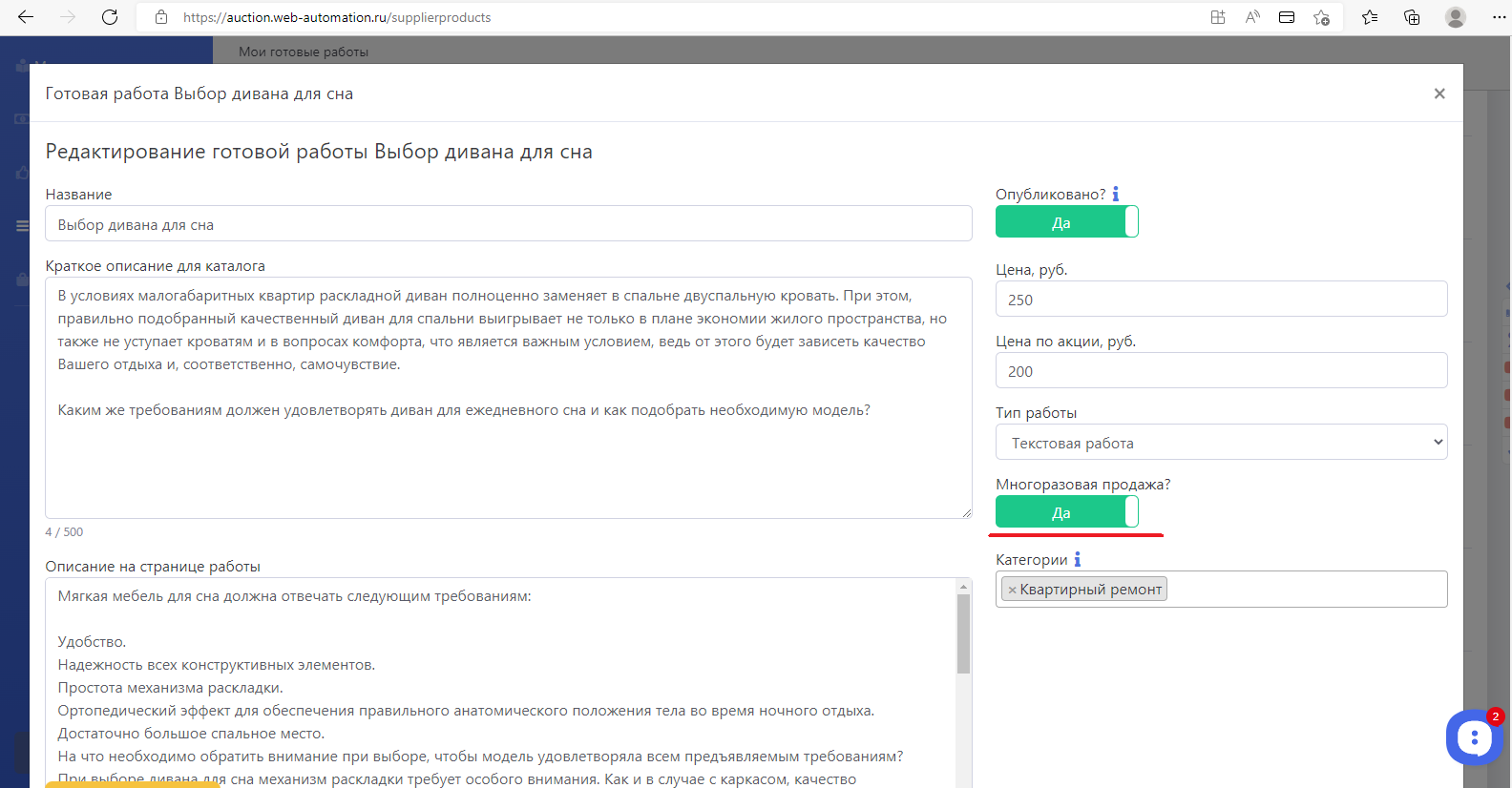 Как работает многоразовая продажа и продажа уникальной работы