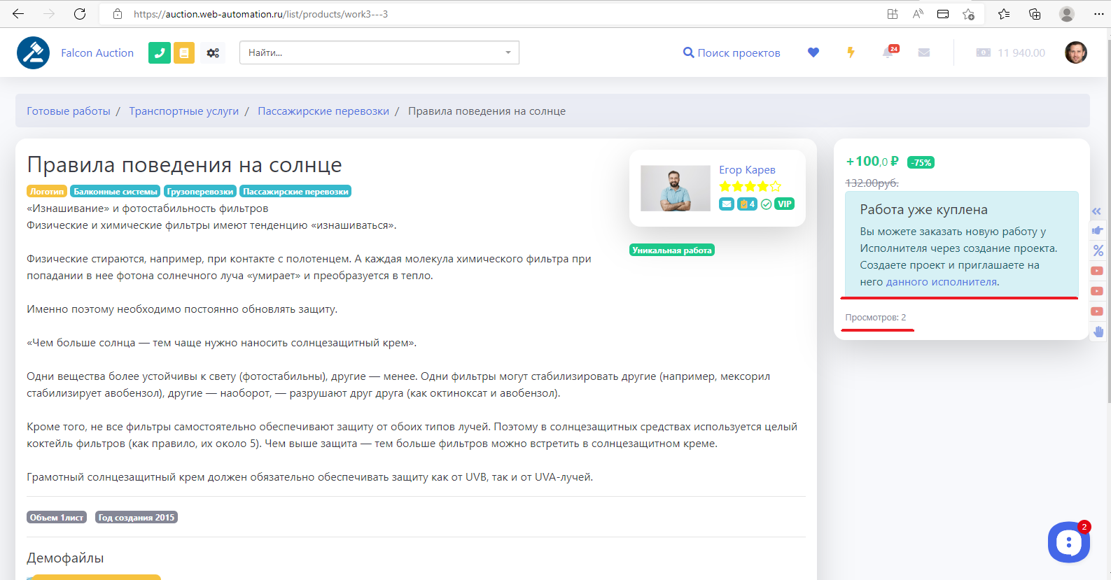 Если работа подразумевает многоразовую продажу, то на карточке работы будет всегда кнопка Купить несмотря на прошлые покупки работы. Также будет видно сколько раз уже покупали эту работу.