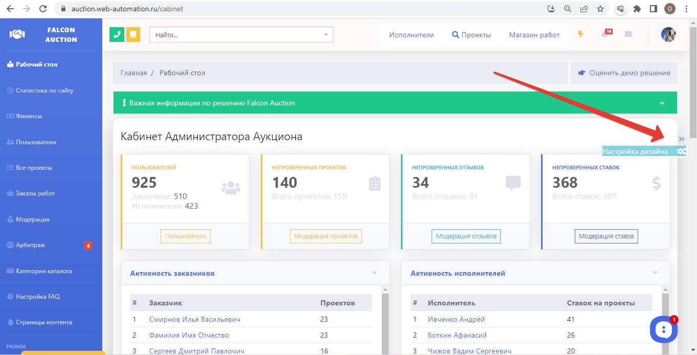 В кабинете Администратора в панели быстрых действий есть форма Настройки дизайна.