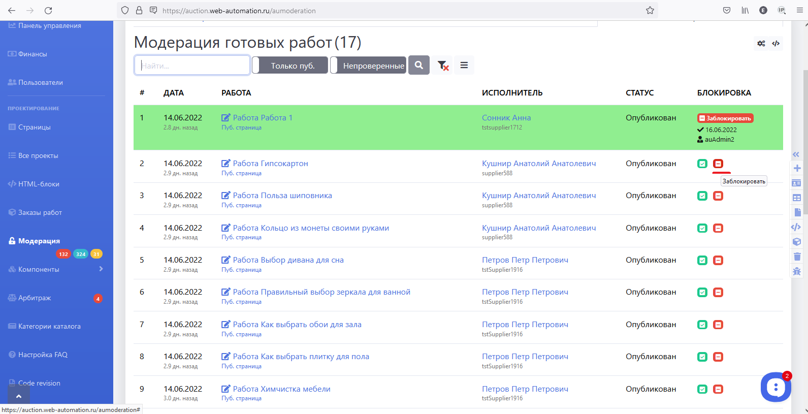 Также это может сделать и Администратор через механизм блокирования работы в разделе Модерация.