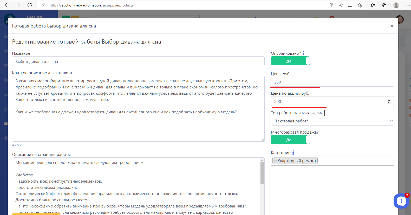 - HOWTO Готовые работы Как работает механизм Магазин готовых работ Как купить работу. Как происходит оплата готовой работы. Комиссия сервиса за покупку работы Как работает многоразовая продажа и продажа уникальной работы Как работает механизм возврата оплаты за готовую работу Как модерировать готовые работы Как указать скидку на готовую работу Как убрать работу из каталога готовых работ В каком виде хранится сама работа на площадке