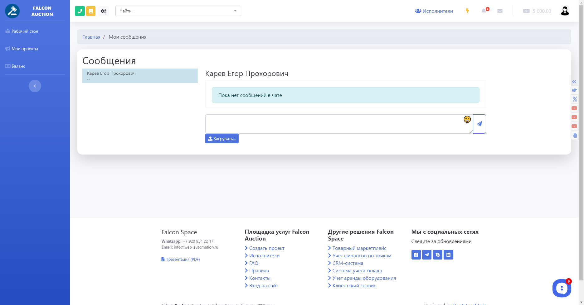 Заказчик и Исполнитель могут вести переписку между собой по проекту.