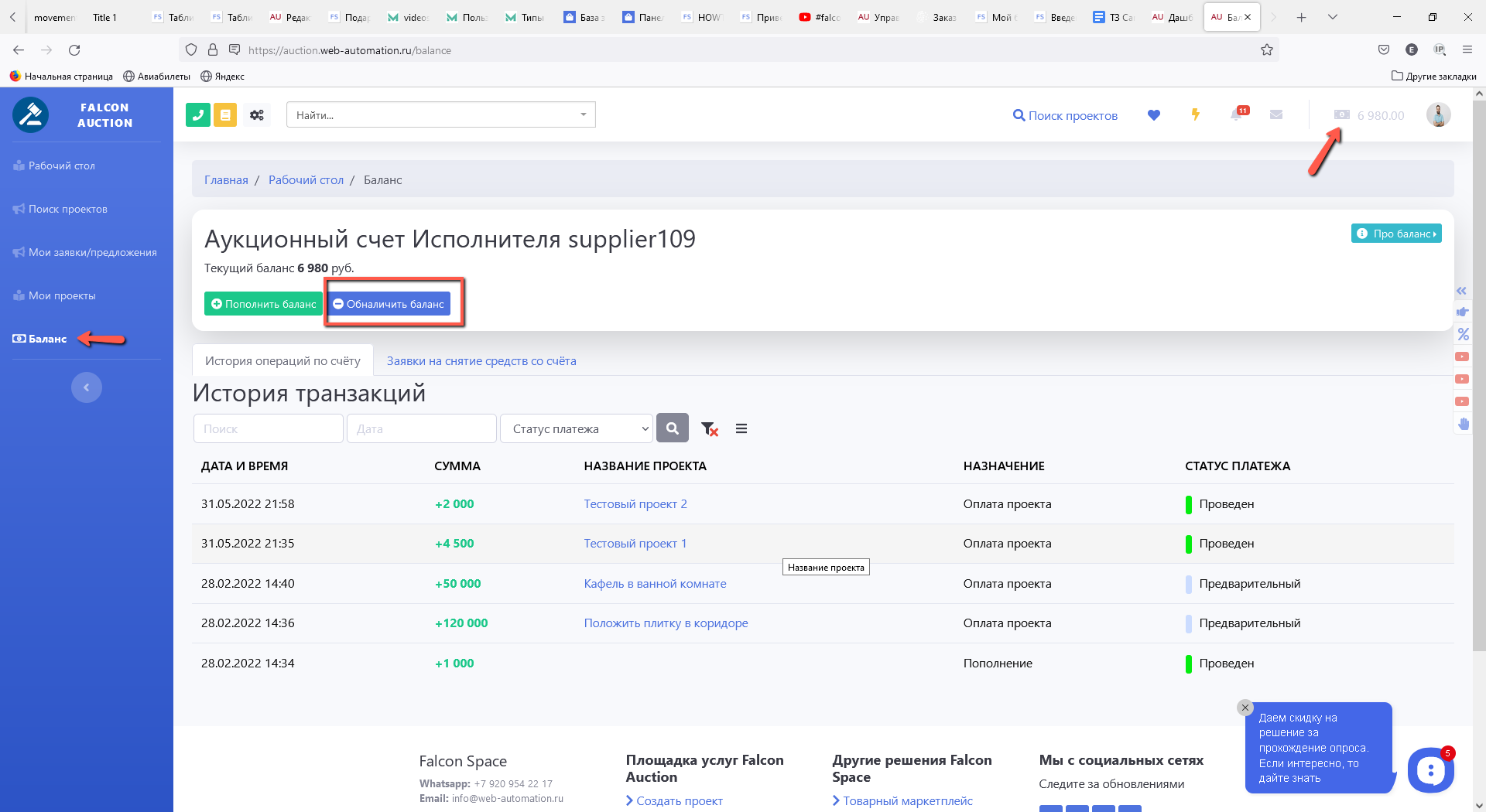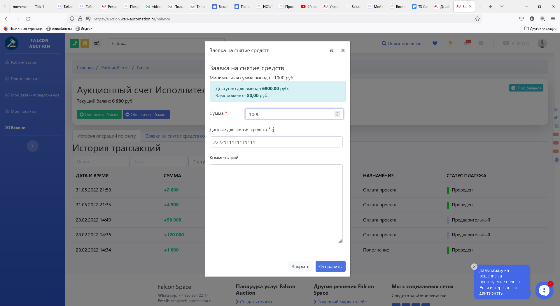 На балансе Заказчика/Исполнителя может быть сумма, которую он хотел бы вывести с площадки.