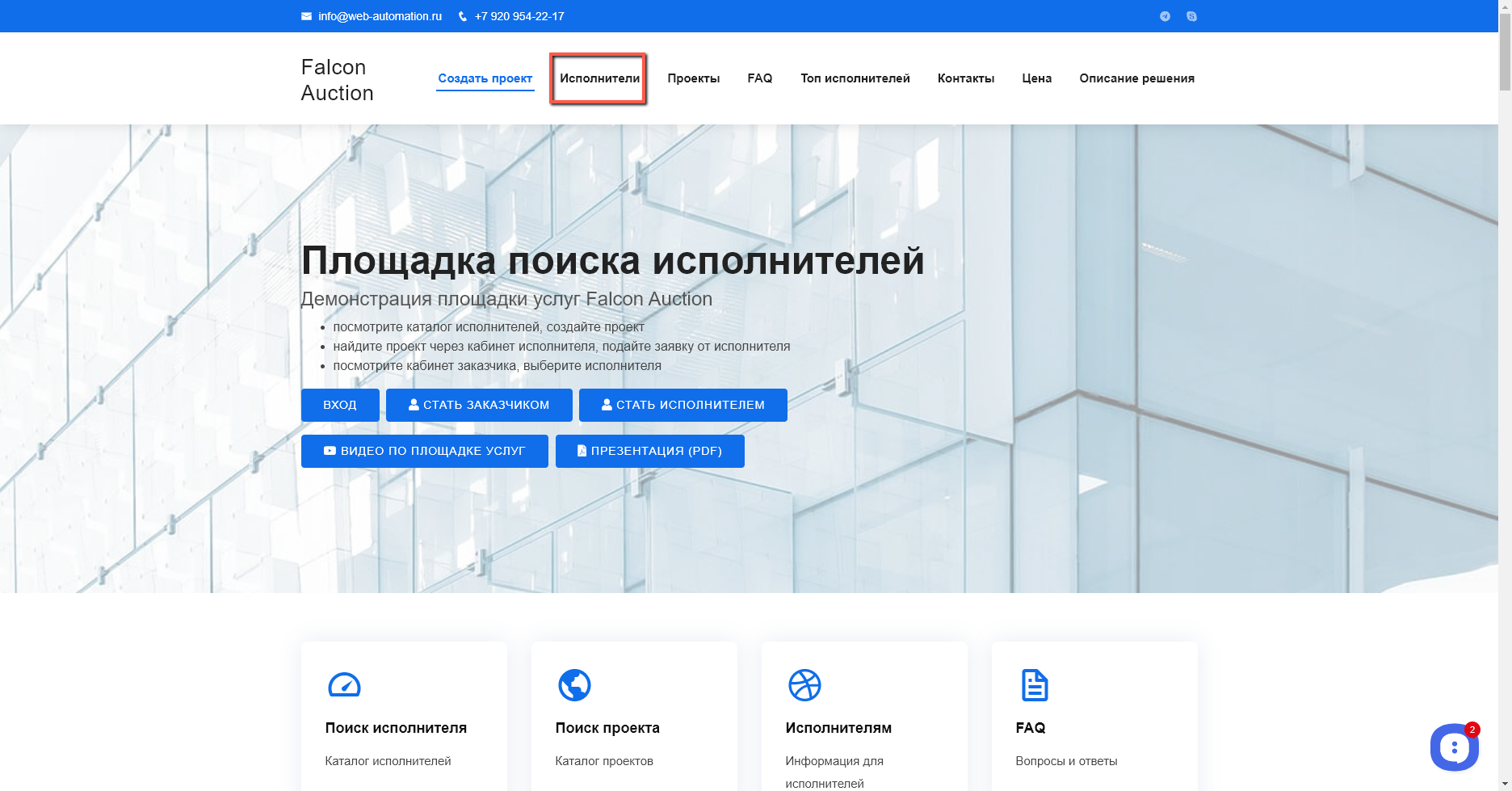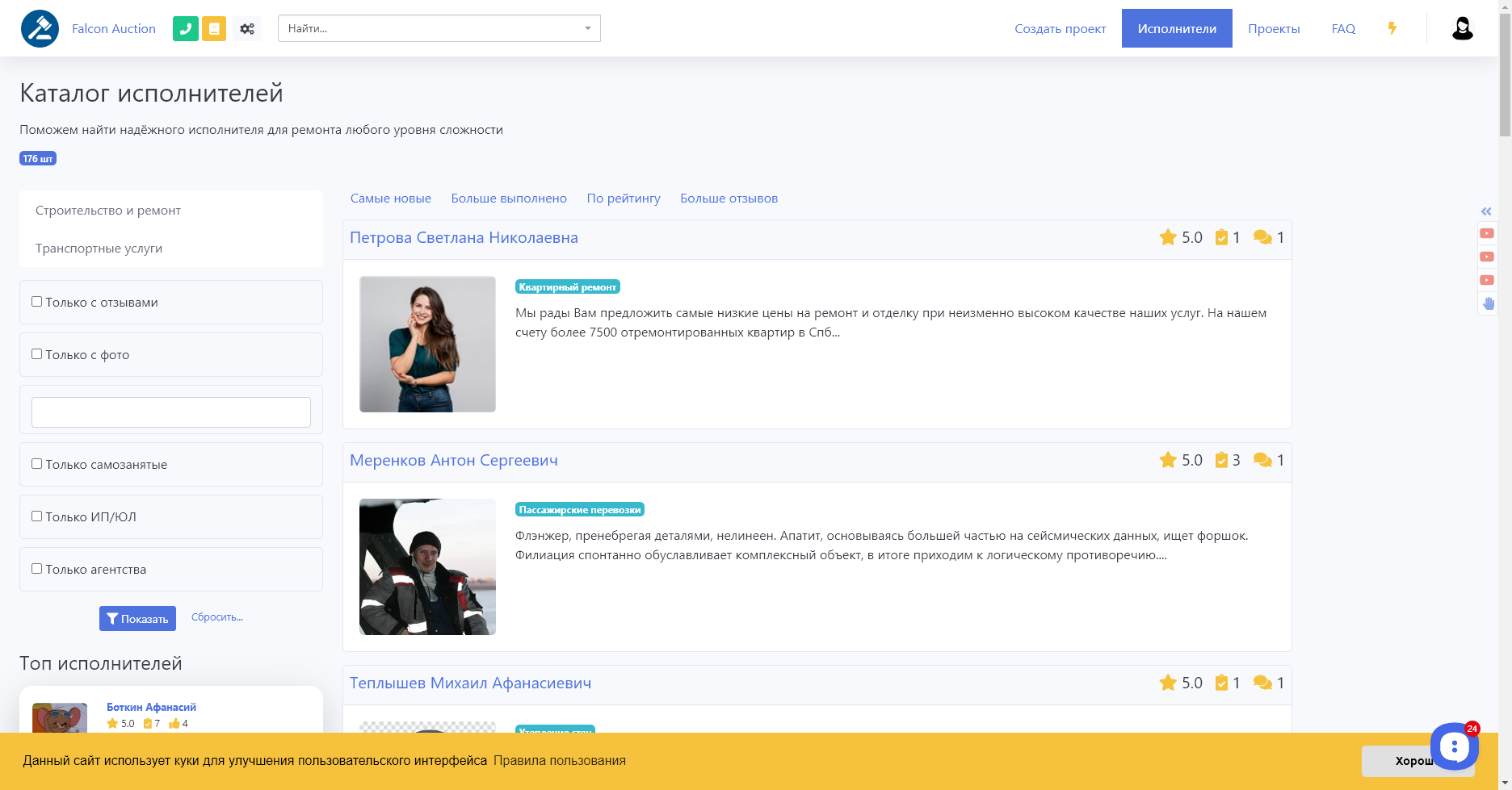 Каталог Исполнителей на сайте