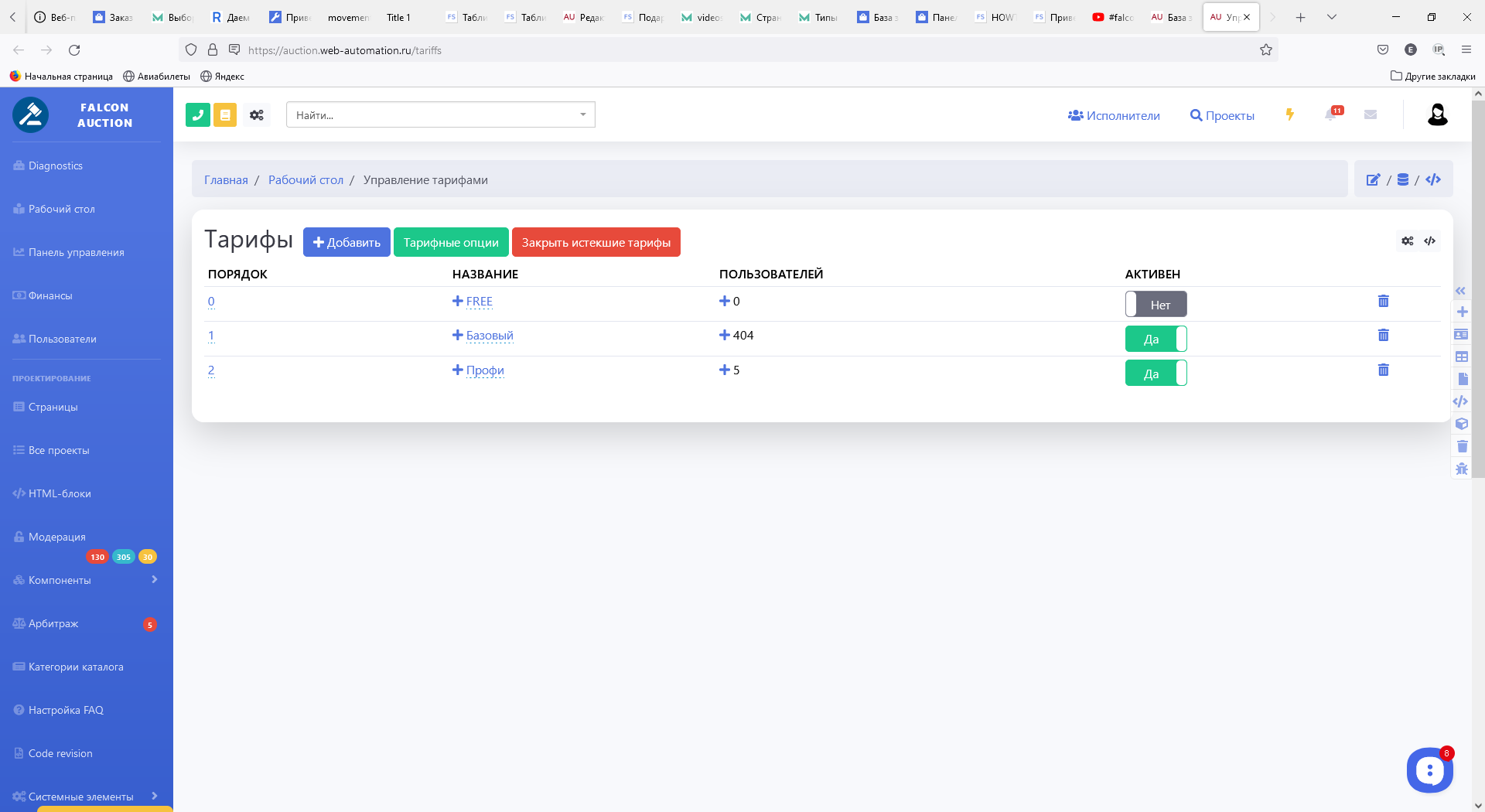 Позволяет полностью управлять существующими тарифными планами, либо создавать свои собственные. А также отображает информацию о том, сколько пользователей выбрало определенный тариф.